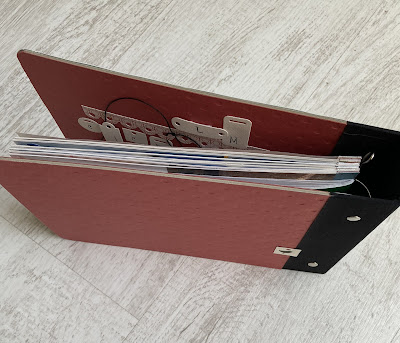 Un cop més he utilitzat un àlbum d'anelles per mida fotogràfica 20x15cm., amb el llom de vellut negre i la resta folrat amb paper decorat, una foto a la tapa, i cartolina amb textura per les parts interiors i contraportada.